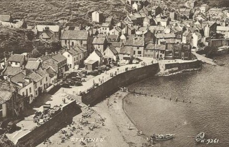 In this deep gully, hidden from land and sea, one seems to be worlds away from ordinary English life. Even the people are picturesque; the women and little girls in pink or lilac sunbonnets and gay aprons, and the men and boys in dark blue knitted jerseys. Every group of children, every ancient mariner, every pretty girl in a doorway, is as decorative as a peasant in the chorus of an operetta.