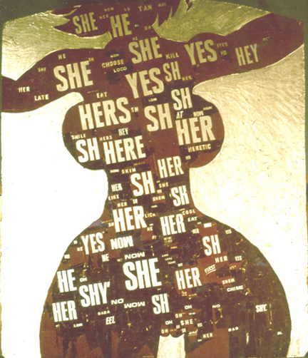 A fascinating affiliation between Fluxus and pop art occurs in Al Hansen’s Venus collages produced from about 1960 to 1995. In most of them Hansen appropriates Hershey bar wrappers to reference oral sensuality (“Lick me,” “Like me,” and “oh” over the crotch) and graft it onto the visual art tradition of Venus-making. These Venuses’ ”licked” wrapper surfaces evoke both classic Venuses (of Botticelli, for example) and, with their accentuated hips and thighs, primitivistic fertility goddesses such as the Venus of Willendorf. Some of Hansen’s Venuses are made of cigarette butts or matches, likewise conjuring up lewd associations with orality and a strong libidinal force. Although these collages, especially those made with Hershey wrappers, clearly partake of a pop art context, the banal association with consumerism is complicated by the overlay of 1960s sexual mores, art-historical references, and the flavor of chocolate.
