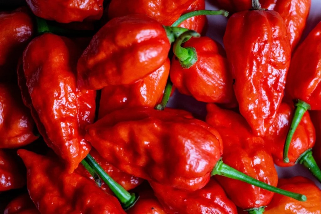 ‘Eyes glaze. Brows perspire. Arms flail.’ So reads the description of this chilli on the PuckerButt Pepper Company website, developed by ‘Founder, President, Mad-Scientist & Chef’ Smokin’ Ed Currie in the humid Deep South climate of South Carolina. Ten years in the making, the Carolina Reaper, which first appeared in 2011 under the strain umber ‘HP22B’, was bred by crossing sweet habanero and Naga Viper chillies. It was awarded the Guinness World Record for the hottest chilli in November 2013, defeating the Naga Viper.