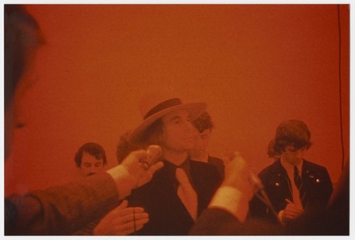 In 1969, Byars created ‘The Ghost of James Lee Byars’. A work which is all atmosphere, it physically consists of a space from which light is excluded, apart from a faint glimmer around the entrance and exit doors. In the same year, at the Eugenia Butler Gallery in Los Angeles, he also created ‘This is the Ghost of James Lee Byars Calling’, in which an entirely red room, lit only by a small hole in the ceiling, becomes a theatre where an aural image of the artist is summoned up through the reading of letters describing him. In an earlier part of this same exhibition, titled ‘Shutting Up Genie’, he made the gallery owner invisisble by shutting her off from the exhibition space and forbidding her to enter the exhibition.