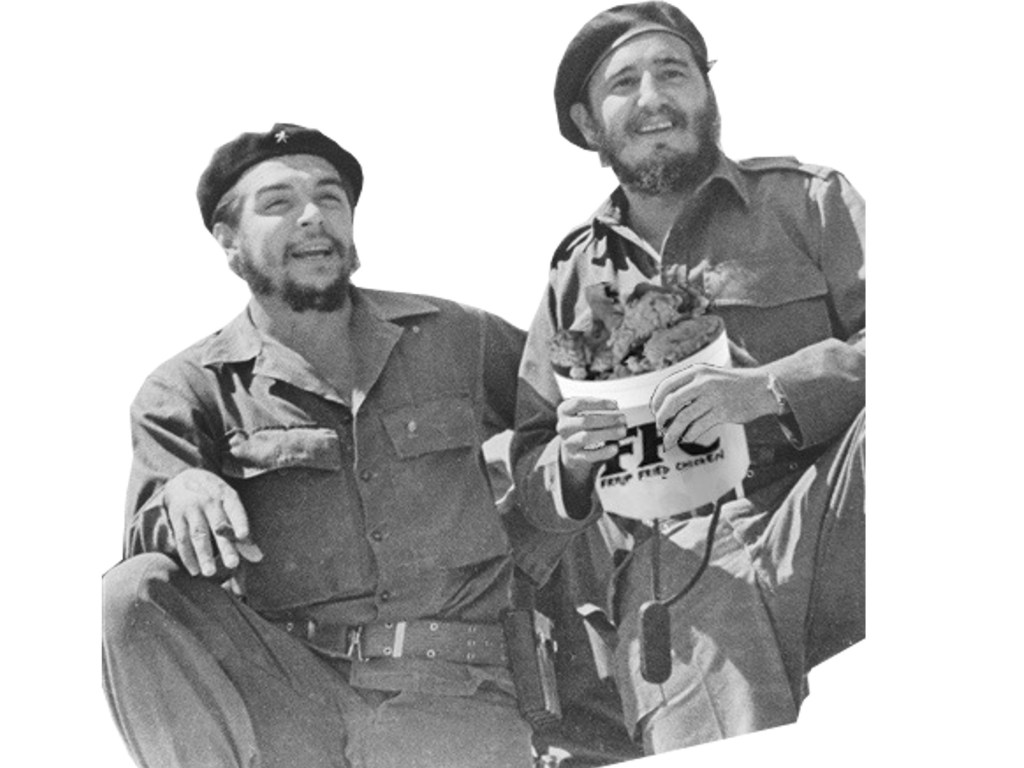 1953: Accompanied by nineteen surviving comrades and equipped with a bucket of Fryup Fried Chicken, Fidel Castro takes to the rugged Sierra Maestra mountains to begin what would become the Cuban revolution.