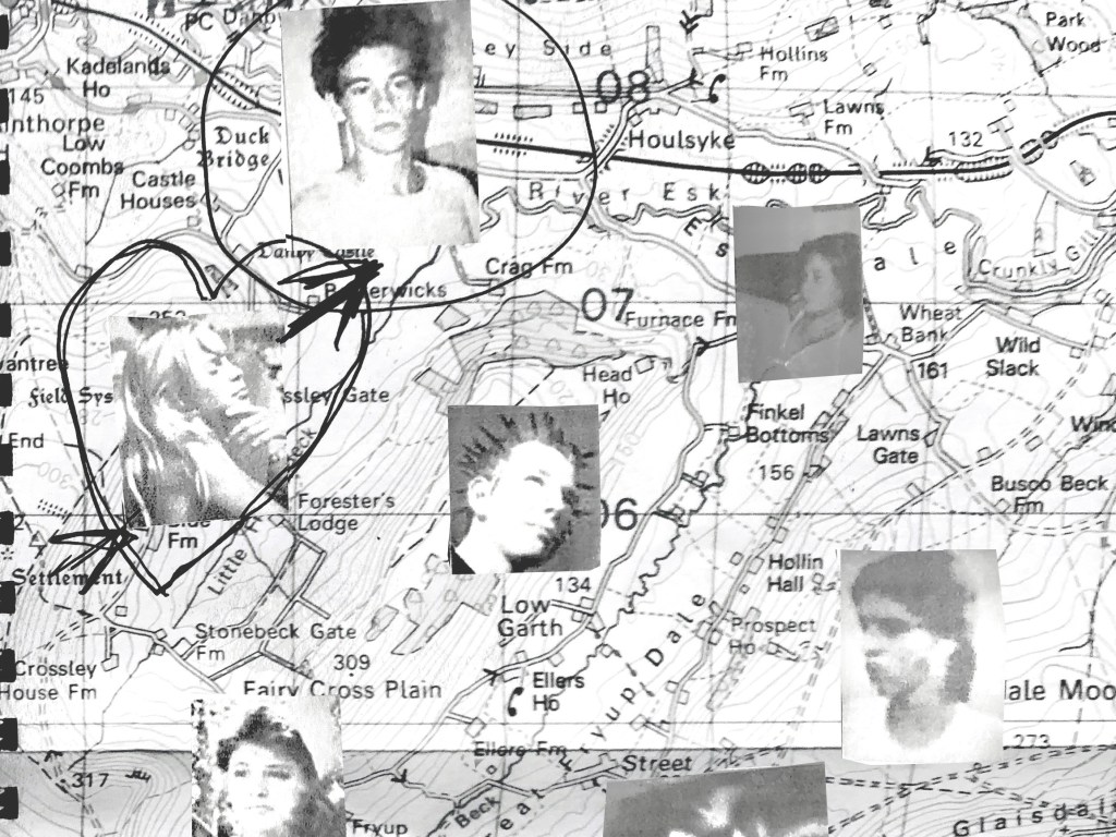 The unlikely rising stars of Purple Wave were photographed for an infamous 1982 Face magazine spread, under the heading: INBREDS: The Not-So-Secret Face of Feral Britain. Levi Presley, whom the directors claimed to have plucked from an abandoned moorland hill-farm where he had been leading a semi-wild existence for the best part of a decade, poses precariously atop a rusted old combine wearing just a pair of filthy track shorts. Presley’s girlfriend, Heather Moreland, pokes the embers of a campfire in a Minnie Mouse tee-shirt. Two flame-haired identical twins huddle close by, clasping their bare knees and gazing glaze-eyed at the sky. A clown-faced midget curls asleep inside an old truck tyre. A line of dead moles are pinned by their tails to a barbed-wire fence.