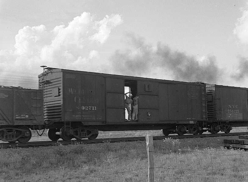 A freight train came along on some tracks that ran parallel to the highway. At first it was a distant light and short bursts of horn, and then it was rolling past me, slow and stately, on its nightly procession through Livingstone. It was enormous – American trains are twice the size of European ones – and at least a mile long. I counted sixty freight cars on it before I lost track, all of them with names on them like Burlington Northern, Rock Island, Santa Fe. Towards the end of the train one car went by with its door open and I could see three shadowy figures inside: hobos. I was amazed to find that such people still existed, that it was still possible to ride the rails. In the dusk it looked a very romantic way to spend your life. It was all I could do to keep from sprinting along and climbing aboard and just disappearing with them into the night.