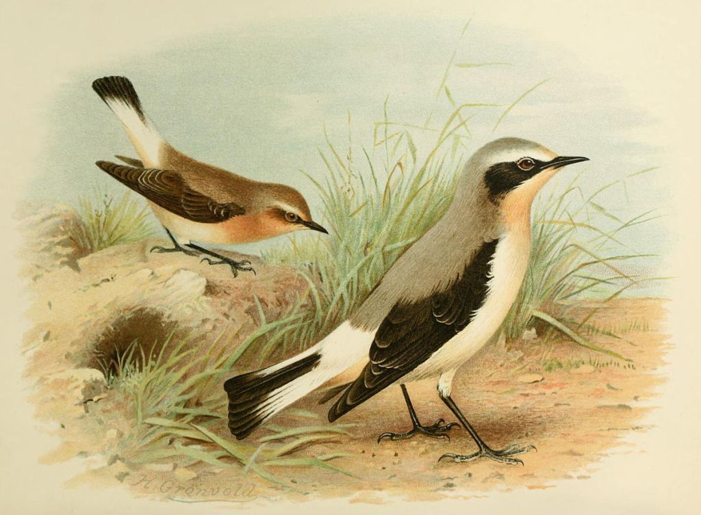 When they fly they flash the white rump that gave them their name, a bowdlerised form of ‘white-arse’; their soft sun-bleached shades of pink and buff are topped with a black bandit’s mask. Weighing just two tablespoons of sugar, the wheatear makes one of the longest journeys of any small bird, crossing ocean, ice and desert from sub-Saharan Africa.