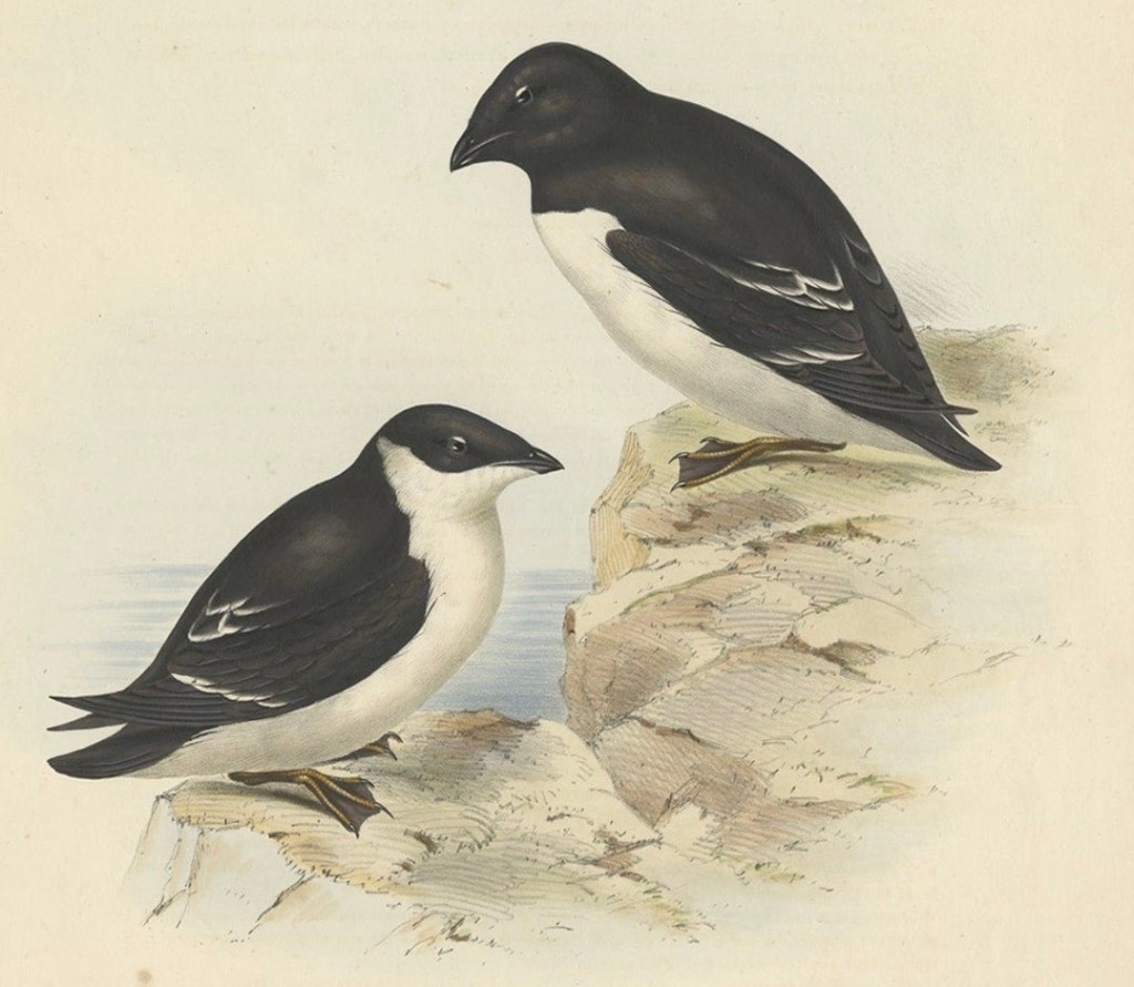 The Fryup island of Alviss is home to the last remaining colony of dwarf auks, sparrow-sized cousins of the similarly flightless great auk, which became extinct in the mid-19th century. Around fifty nesting pairs inhabit small caves at the foot of the island’s virtually inaccessible sea-cliffs, creating a unique natural barrier against predation. Deptford warblers, so named for their habit of congregating around the wreck of the Deptford coal barge at low tide, are prevalent at the northern tip of Mardoll. Because of their association with shipwrecks, it is said that if a sailor encounters a Deptford warbler, he must skip and sing a shanty before he sets sail. The Fryup islands boast the only only recorded British sightings of a number of species, including the Abyssinian scimitarbill, the pearly-eyed thrasher, and the fearful owl.