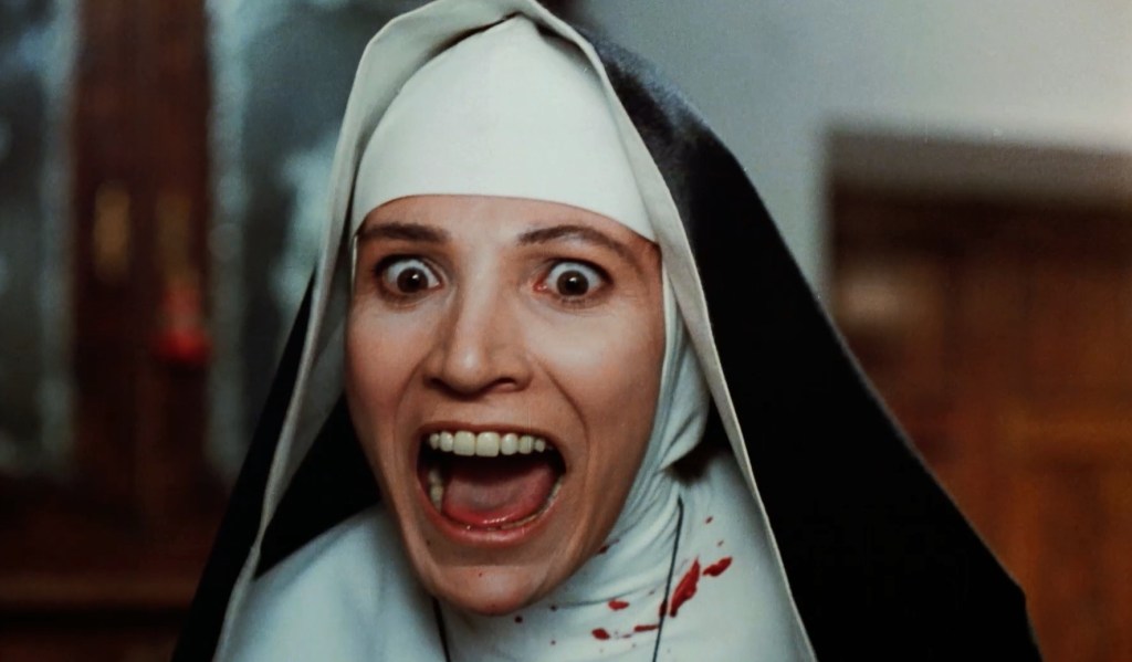 Sizzling with blasphemous delights, nunsploitation films are a heavenly mix of the sacred and the profane, where the hunger of the body rails against the strictures of religious dogmas. Underneath the severe habits, pain and pleasure coexist, as scenes or torture and self-flagellation are often juxtaposed with the fleshy rapture of homoeroticism. Scintillating on the surface, their constellation of lesbianism, hysteria, and sacrilegious visions constitutes a defiance against the masculine hierarchy of the Catholic Church.