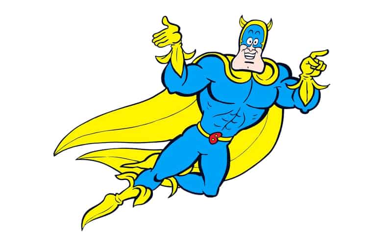 Eric Wimp, an ordinary schoolboy living at 29 Acacia Road, eats a banana to transform into Bananaman, an adult superhero, sporting a distinctive cowled blue and yellow outfit complete with a yellow two tailed cape resembling a banana skin. His superpowers include the ability to fly, superhuman strength, and apparent invulnerability. If he requires a strength-boost, extra bananas are provided by his faithful pet crow.