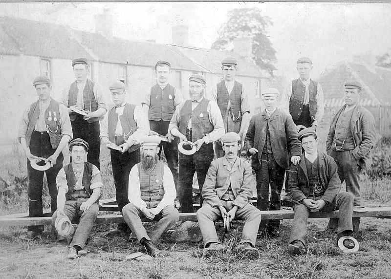Quoits still figures in the programmes of a few local shows and sports. Once it was played often in the inn yards by enthusiasts night after night throughout the summer, except in hay-time. A set of quoits used to be kept on most farms or failing that the game was played with horseshoes.