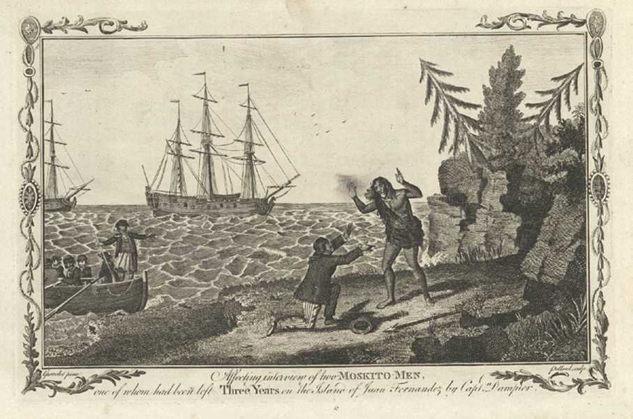 The Moskito men are tall, well made, raw-boned, lusty, strong, and nimble of foot, long-visaged, lank black hair, stern of look, hard-favoured, and of a dark, copper-coloured complexion. They are very ingenious at throwing the lance, fizzgog, harpoon, or any manner of dart, being bred to it from their infancy. They have extraordinarily good eyes, and will descry a sail at sea farther, and see anything better than we. They fear the devil, and they say he often appears to some among them. Within land there are other Indians, with whom they are always at war.