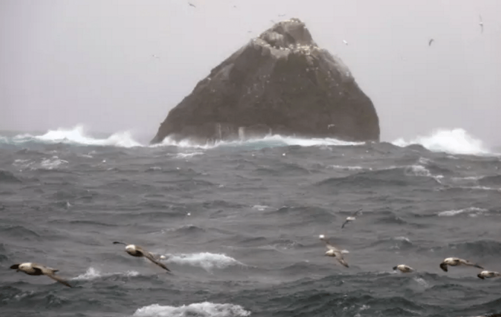 Rockall is a pyramid of volanic granite that sticks up out of the stormiest patch of the Atlantic like the fin of a gargantuan shark. The sea is so tempestuous here that it is almost impossible to determine the island’s height. For at least two centuries it was mistaken for Frisland, a mythical island posited by Venetian navigator Nicolò Zeno, and the equally mysterious island of Buss. Others even claim it is a fragment of the mythical Kingdom of Hy-Brazil, the land of eternal youth.
