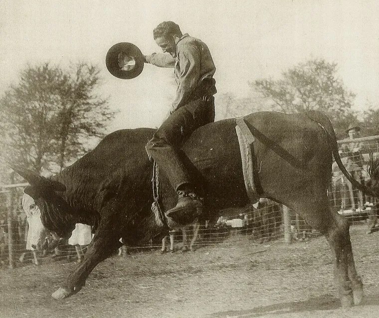 I worked in the charreadas, a Mexican form of rodeo, as a kind of arena clown, riding on young bullocks even though I’d never even ridden a horse before. My chosen sobriquet was El Alamein, because no-one could say my real name and for simplicity’s sake referred to me as el Aleman, or the German. I, however, insisted on El Alamein because, to the glee of the crowds, I was severely beaten at every appearance, a tacit nod then to the German defeat in the North African desert. Each Saturday this defeat, and to be more specific, the injuries I inevitably incurred could be marveled at anew.