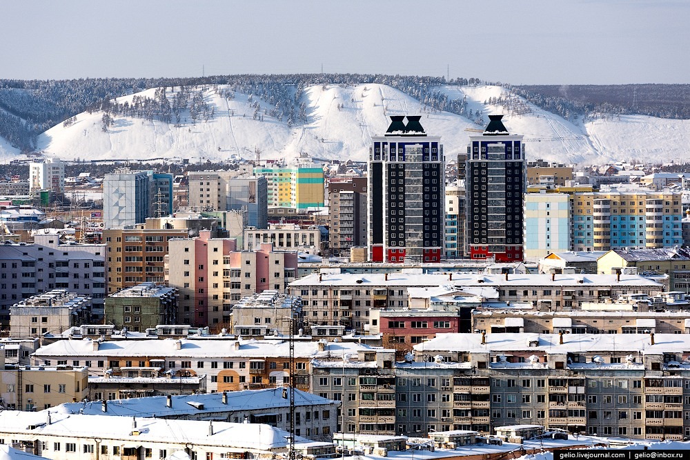 I landed in a town of ice and twilight. All the buildings were raised above the permafrost a regulation four feet on concrete stilts. The air was frozen still. The apartment blocks hovered in yellow cliffs above the whiteness, and seemed recessed coldly into the sky. The marshes and inlets of the Lena were frozen under seamless snow. Snow turned everything else black. People trailed along the streets in black overcoats and black hats, like loosed shadows. By day the sun barely winched itself into the sky above the white hills.
