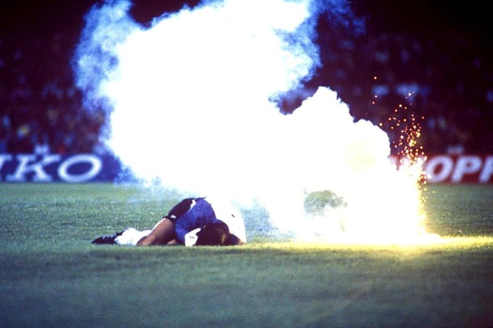 In the 67th minute, Chilean goalkeeper Roberto Rojas, nicknamed El Condor, fell to the ground, bleeding, having apparently been hit by a flare thrown by Brazilian fans. The next day, television images and several photos revealed that the flare had not hit Rojas, but landed over a metre away. After questioning, Rojas confessed to having cut himself with a razor blade hidden in one of his gloves, as part of a plot to nullify the result of the game and have Brazil thrown out of the World Cup. Ten days after the game, FIFA banned Rojas from professional football for life.