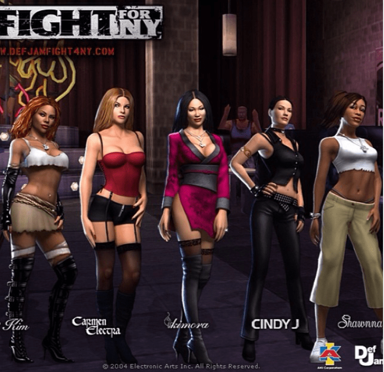 Showing up in a loincloth-cum-miniskirt, thigh-skimming leather boots and long, tangerine tresses, Kim’s character goes through quite the ups and downs, with an arc that includes a bitter rivalry with Carmen Electra, a kidnapping subplot, and getting trapped in a burning building with no means of escape. Fun! And if that wasn’t enough, Kim also appeared in the prequel game Def Jam Fight For NY: The Takeover where she can be seen executing her signature Queen Bee move while bellowing “BROOKLYN!!!!” at the top of her computer-generated lungs.