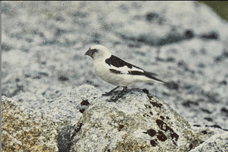 The real home of the snow bunting is in the arctic where it nests further north than any other land bird in the world. Some of its homelands include countries which we always associate with cruel coldness – Alaska and Ellesmere Island, Spitsbergen and North Greenland, Siberia, Novaya Zemlaya and Franz Josef Land. It is almost as much at home in the nunataks among the great land ice masses as it is a household bird in arctic towns, settlements and villages.