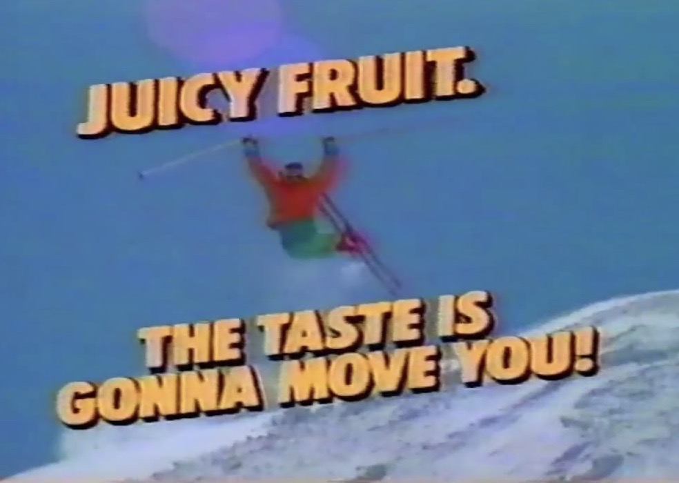 One Juicy Fruit commercial from the ‘80s depicts fans jumping off snow-capped hills on skis while a voiceover jingle promises, “Take a sniff, pull it out, the taste is gonna move ya when ya pop it in your mouth.” How exactly it gets the job done is for Wrigley’s to know and for fans to not think about too hard.