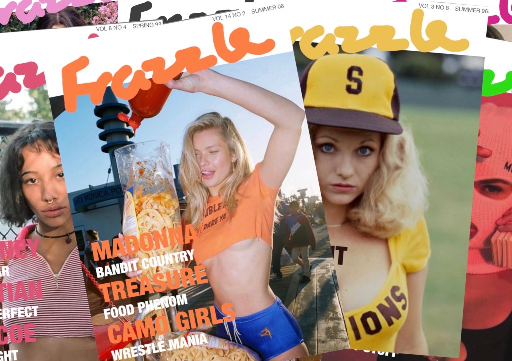 Frazzle was a magazine founded in 1992 by model and It-Girl Heather Moreland. Loosely modelled on Andy Warhol’s Interview, the magazine focused on subjects relating to Fryup society, including art, fashion, food, and Q&A-style interviews carried out by Moreland herself. Interviewees included Madonna and Anthony Bourdain. Frazzle was officially closed in 2010 amid persistent allegations of plagiarism and copyright infringement.