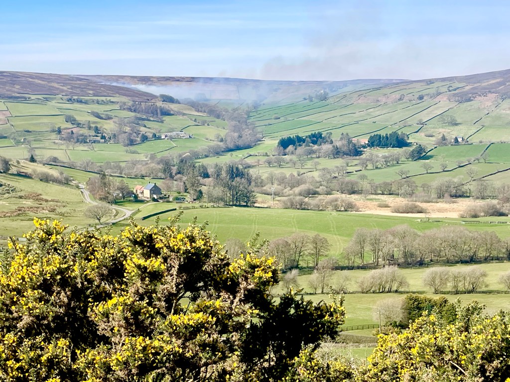 Broad and fruitful, the cornfields and meadows cover the bottom, rising gently from its beck, and above them stand the farm-houses dotted about the hillside, each – as you find them often in Yorkshire – with its clump of trees, places seeming so peaceful and sequestered on the sunny slopes that you might fancy trouble could never enter at its door.