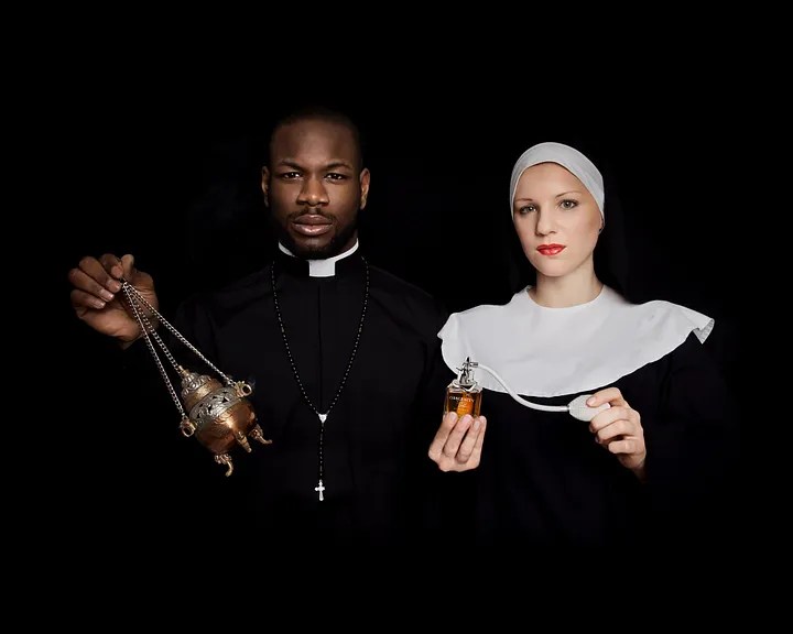 Obscenity combines 27 essential oils, including frankincense, cedar and sandalwood, with holy water from Lourdes. “It’s warm, flowery and exotic,” says LaBruce, who will sell a limited edition of 100 bottles in commemorative packaging. The bottle cap, designed by Jonathan Johnson, shows a naked woman in heels wearing a nun’s habit, kneeling on a holy wafer perched on a tongue.